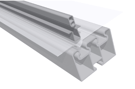 Single Ali-trap is mainly used for fixing polythene in to the gutters on a commercial polytunnel. Double Ali-rail is usually fixed over the top of the first and last hoop on a commercial polytunnel, allowing for a simpler, pleat free installation of the cover giving the structure a professional finish. Fittings are available to suit 50mm and 60mm OD hoops and are spaced every metre.