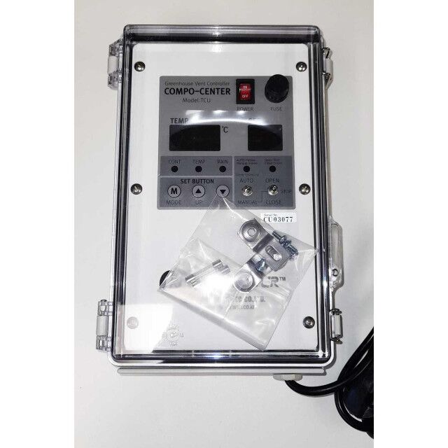 This micro-computer has three inputs, enabling it to make decisions based on the greenhouse air temperature, outside air temperature (or rainfall with an optional rain sensor), and an emergency high temperature sensor.