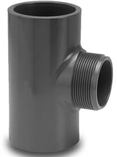 The VDL Adaptor T-Piece 90° (PVC-U, Grey) is a practical three-way pipe fitting designed for creating a branch in pressure pipe systems. Made from strong, corrosion-resistant PVC-U, this 90° T-piece features glue-socket connections on two arms with a central male threaded port, allowing you to join glued PVC pipework with threaded components easily. Its versatile connection configuration makes it ideal for adapting and routing pipework in irrigation, plumbing, and water distribution applications. Engineered for reliability and simple solvent-weld installation, this adaptor helps ensure secure, leak-resistant joints in your system.